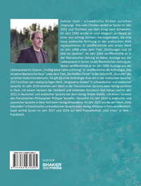 Der Herausgeber, der Dichter Gebran Saad, hat nämlich die Namen der Dichterinnen und Dichter weggelassen und sie erst am Ende des Buches aufgeführt. Damit wollte er erreichen, dass die Zeilen für sich selbst sprechen – ohne den Einfluss des Autorennamens.